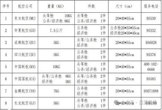 呂梁機(jī)場執(zhí)飛航空公司的隨身手提行李標(biāo)準(zhǔn)