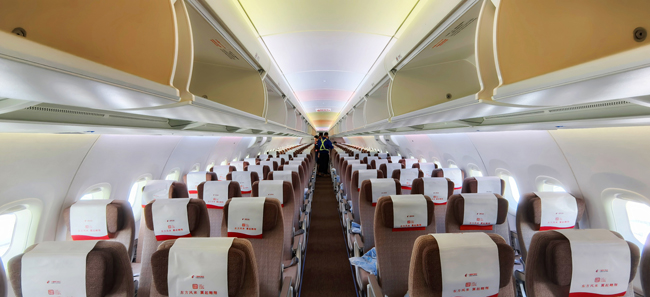 C919是中國首款按照國際通行適航標(biāo)準(zhǔn)自行研制、具有自主知識產(chǎn)權(quán)的噴氣式中程干線客機,具有安全、經(jīng)濟、舒適、環(huán)保的特點,是中國工業(yè)皇冠上的又一顆璀璨明珠。C919客機采用舒適兩艙布局,共設(shè)置164座,包含8個公務(wù)艙和156個經(jīng)濟艙,均選用完全自主研發(fā)的新一代國產(chǎn)客艙座椅,“乘坐舒適寬敞”是C919鮮明的特點。